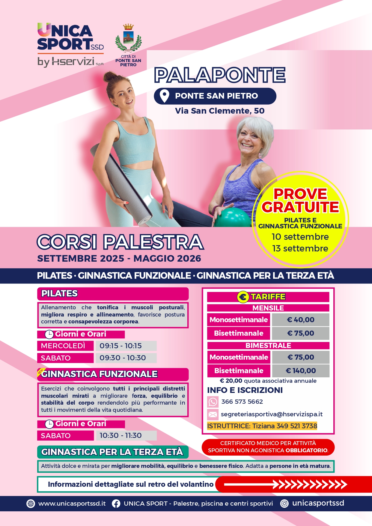 Corsi di pilates, ginnastica funzionale e ginnastica per la terza età presso Palaponte.